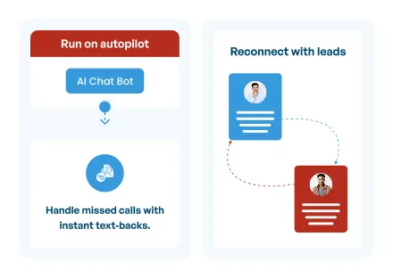 Smart text and email sequences run on autopilot, powered by AI chatbots that handle missed calls with instant text-backs.