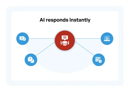 AI responds instantly to incoming leads via SMS and web chat, handling FAQs, appointment booking, and lead prequalification automatically.