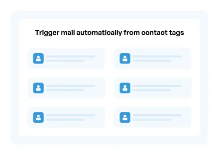 Trigger mail automatically from contact tags or actions to reinforce your digital follow-up with tangible mail that actually gets opened, perfect for real estate investors, roofers, landscapers, and contractors.