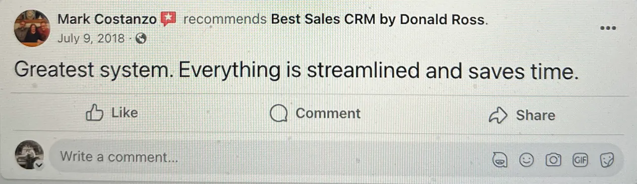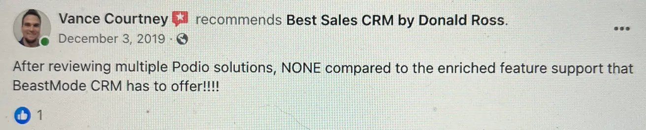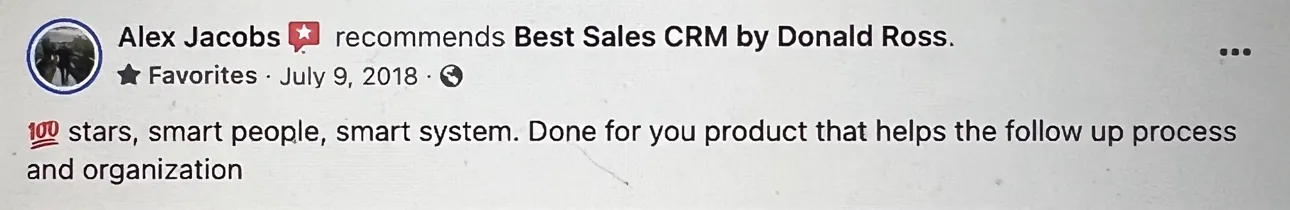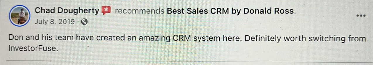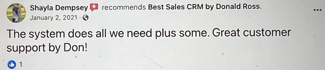 This is the best CRM on the market. The built in follow up system has made us a lot of money. Don is very responsive and always will to help and advise us.