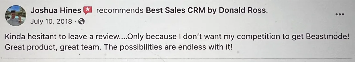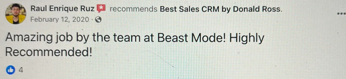 Before Beast Mode, we used Google Sheets and lost track of follow-ups. After switching, everything changed. One lead from May 2020 would’ve been lost, but thanks to Beast Mode's follow-up system, we closed it in Jan 2021—after a year! It’s truly revolutionized our business.