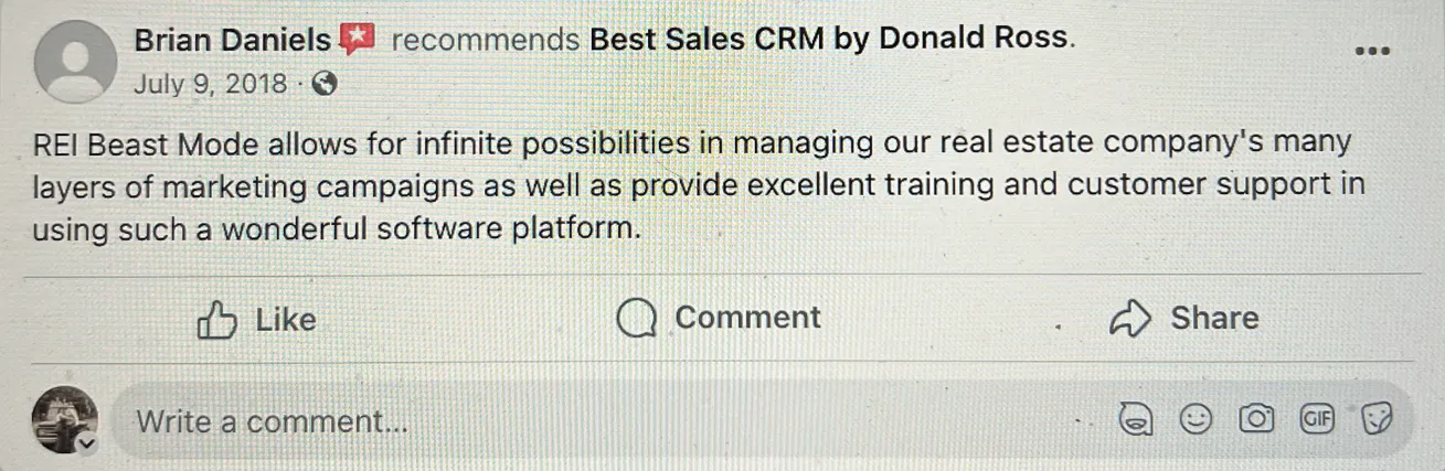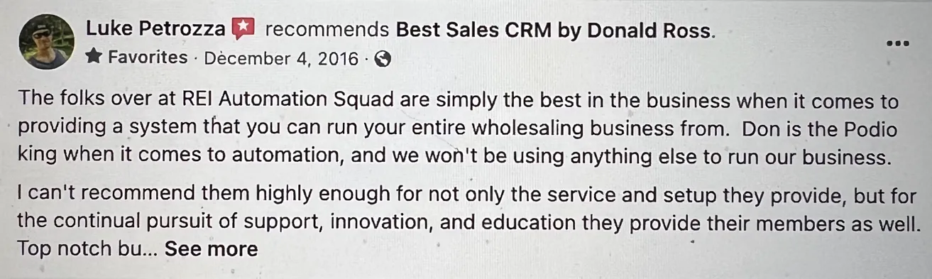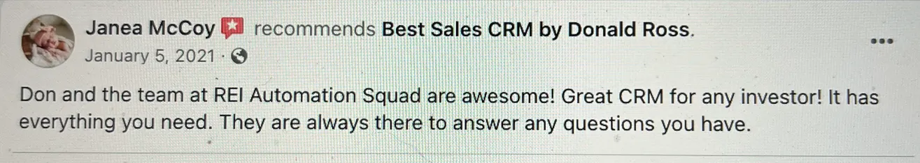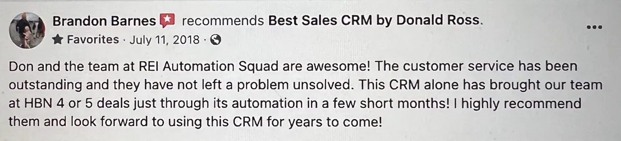 My husband and I do 20–30 deals a year while raising two young kids. I handle both acquisitions & dispositions, so staying organized is crucial. Beast Mode CRM has been a lifesaver—automating tasks I didn’t even know could be automated. It’s helped us do more deals, with less stress. Huge thanks to Don and the team!